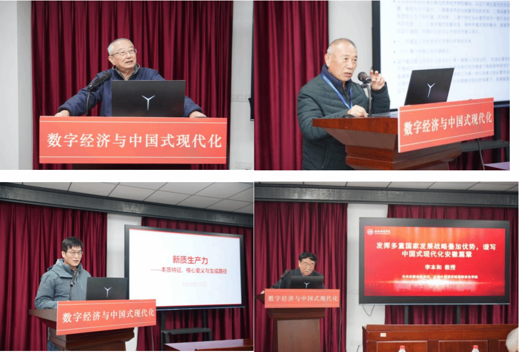 安庆师范大学williamhill官网汪时珍教授主持主旨报告环节,报告包括:《新质生产力的几个基本理论问题》(安徽大学荣兆梓教授)、《论马克思的价值论蕴含的劳动不平等与平等的矛盾关系》(安徽大学马怀礼教授)、《新质生产力——本质特征、核心要义与生成路径》(安徽财经大学李刚教授)、《智能决策方法及其应用》(安徽师范大学刘树利教授)、《发挥多重国家发展战略叠加优势,谱写中国式现代化安徽篇章》(安徽省委党校李本和教授)、《毛泽东政治经济学方法论的闪光点》(淮北师范大学张作云教授)、《社会主义的技术创新——基于<资本论>的规范研究》(合肥师范学院副校长周端明教授)。