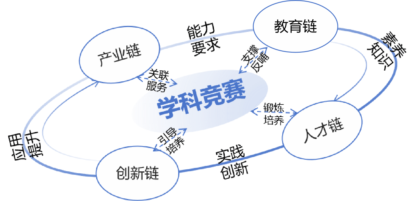 正如获奖同学所说,这一熠熠生辉的奖杯来之不易,是williamhill官网自应用型办学转型以来,创新构建“学科竞赛牵引,四链深度融合”实践育人机制结出的硕果。十多年以来学院以产业学院建设为平台,以竞赛为枢纽,成功打通了“教育链、人才链、产业链、创新链”的有机衔接,形成了以产业学院为支撑,“教·课·赛·创”一体化的实践育人体系。