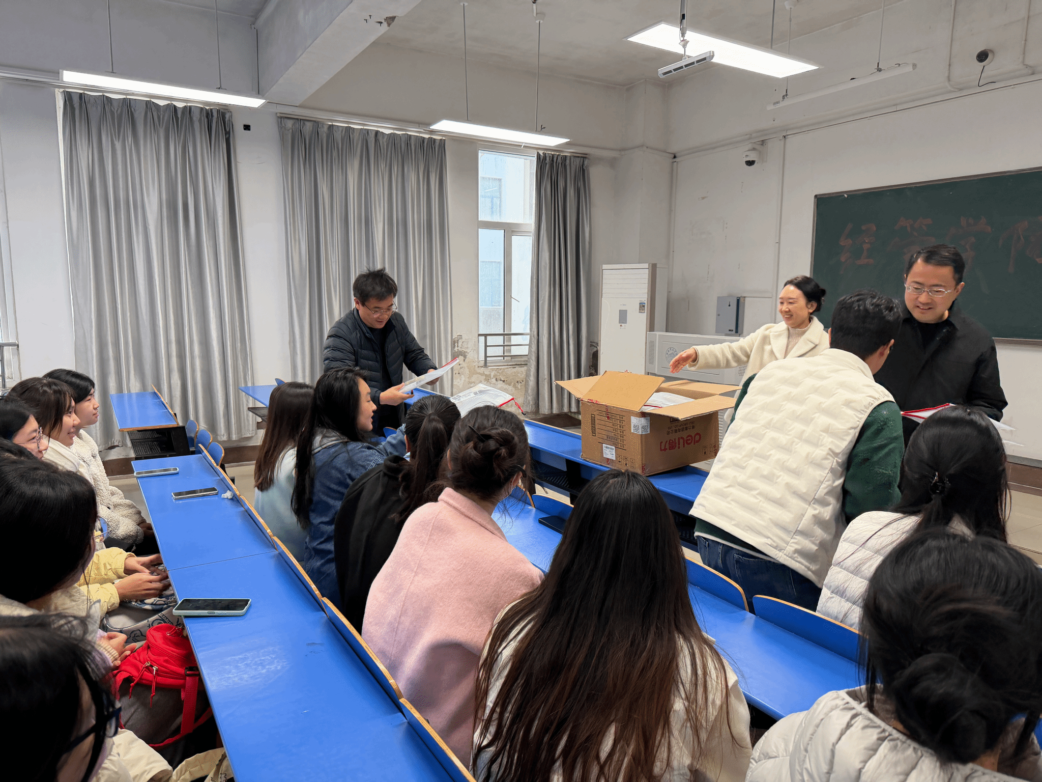 院领导们一同为考研学子分发了学院精心准备的“考研加油包”。同学们接过沉甸甸的暖心礼物,脸上洋溢着感动与振奋的笑容。