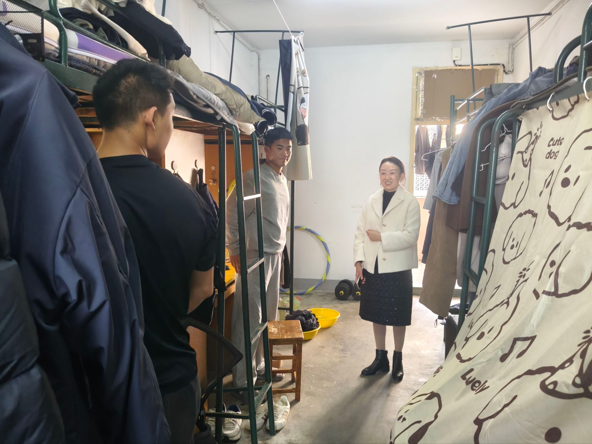 11月20日下午,陈好一行来到滨湖校区学生宿舍,亲切看望学生,细致了解了大家的日常生活与学习情况。检查过程中,陈好重点查看了宿舍用电安全、消防设施、内务整理等方面,并与同学们面对面交流。他强调,宿舍是同学们在校生活的重要空间,维护好宿舍内部关系、共建和谐氛围至关重要。他指出,要坚决杜绝违规用电行为,严禁使用大功率电器等,切实防范消防安全隐患。同时陈好亲切地叮嘱同学们要以学业为重,合理安排时间,营造积极健康的宿舍文化,共同守护文明安全、整洁干净的生活环境。辅导员蒋诗伟、高劲成、王梦凡、黄翔陪同检查。