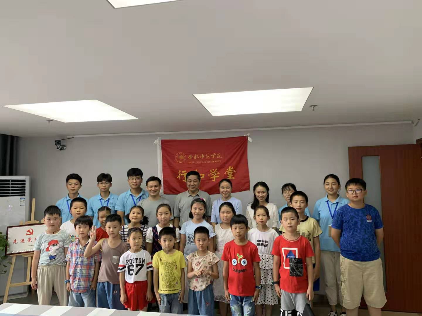 7月底,williamhill官网党总支书记沈辉、团总支书记赵燕和“行知学堂”指导教师李志东驱车前往合肥鲁园社区,看望在这里举办“行知学堂”的各位小先生和参与的小学员们。
